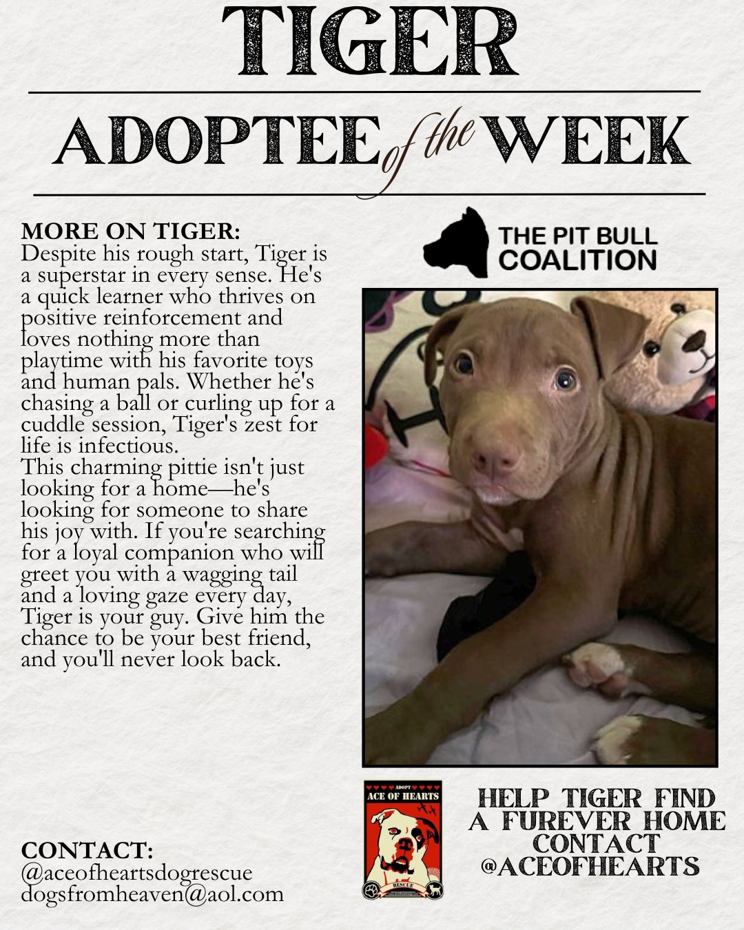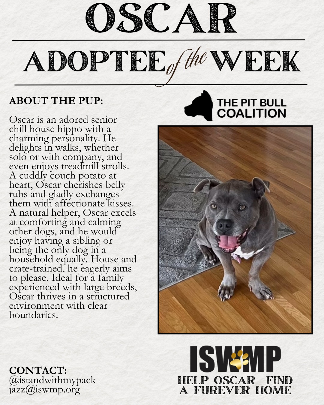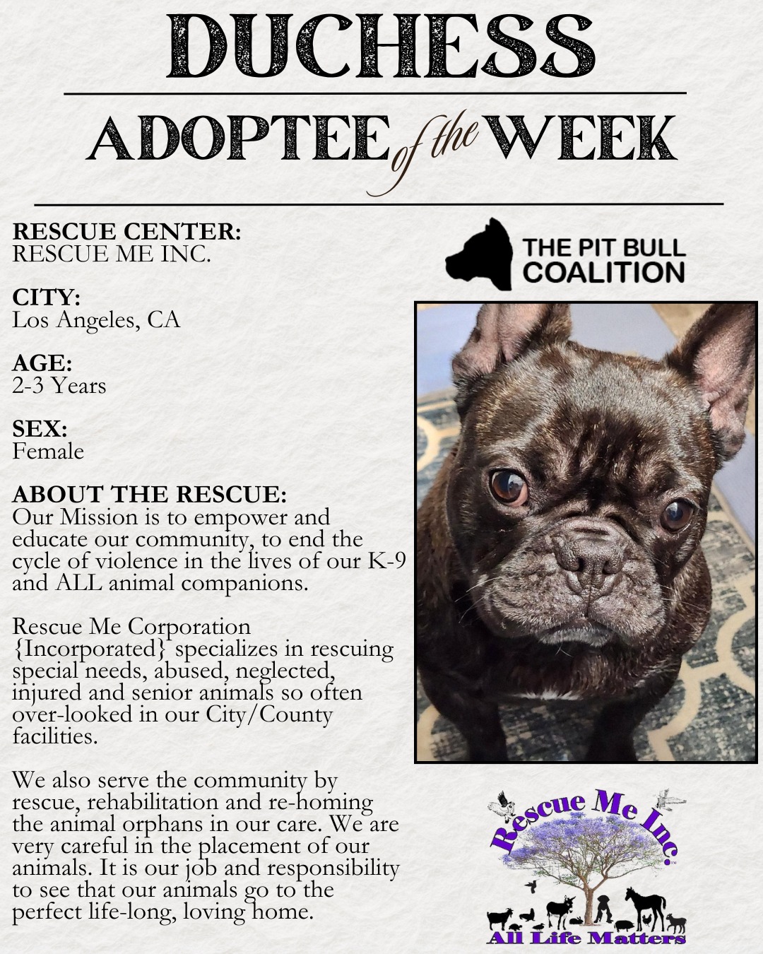 At The Pit Bull Coalition, we strive to unite all pit bull-centric rescues to speak in one powerful, collective voice. Our mission focuses on education about the true nature of all bully breeds, and promoting responsible pit bull ownership. Together, we are taking on the challenges faced by our beautiful bully breeds and by us rescues, which include overturning Breed Specific Legislation, wiping out dog fighting, promoting spay and neuter, and most of all, helping to reduce the shelter population by focusing on supporting the “Adopt, Don’t Shop” movement.
